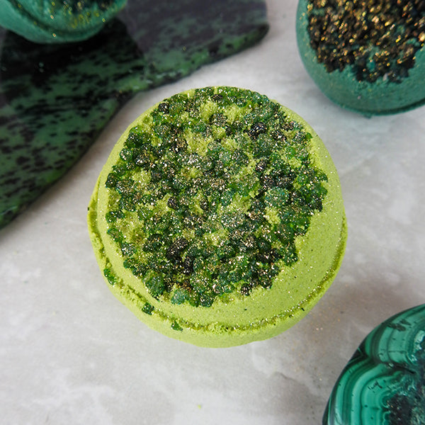 Fill your tub with warm water, drop in your bath bomb, and enjoy as chartreuse tones and shimmering mica swirl into a radiant peridot-inspired oasis. For multiple uses, remove before fully dissolved and let dry between soaks.